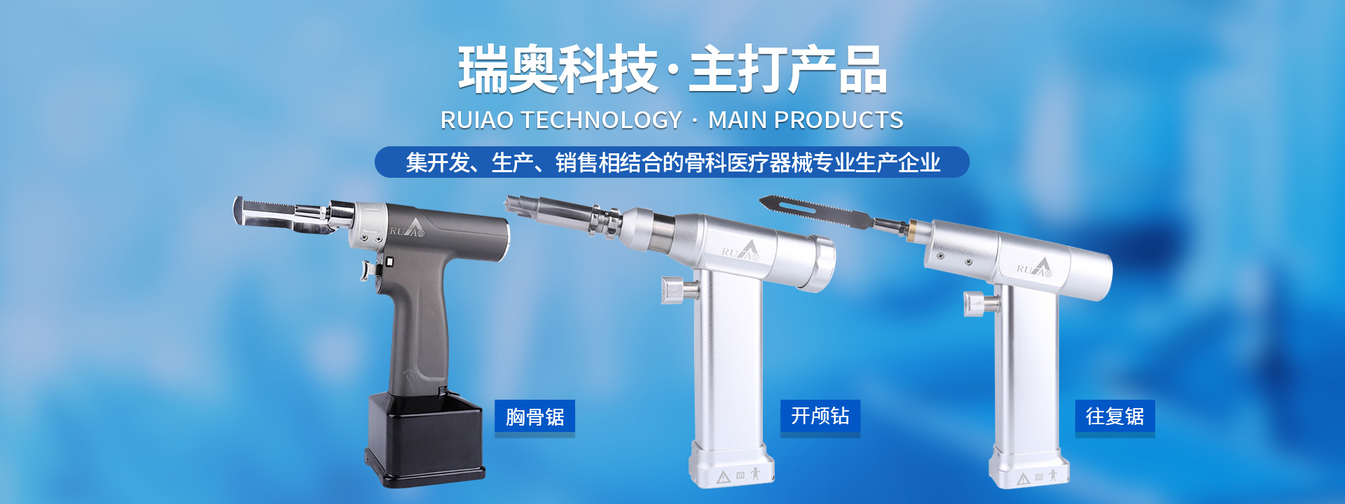 鹽城瑞奧科技有限公司主要產品:醫用電動鋸鉆系列(可高溫高壓消毒和熏蒸消毒兩種):包含骨鉆、擺鋸、胸骨鋸、空心骨鉆、開顱鉆、顱骨銑等等,適用于骨科、腦外科、神經外科、胸外科、手足及顯微外科、脊柱外科、整形外科等各種手術的要求。電動石膏鋸可切割高分子繃帶、石膏等。基礎器械系列:咬骨鉗,髓核鉗,椎板咬骨鉗,持骨鉗,四肢骨折手術器械包等。